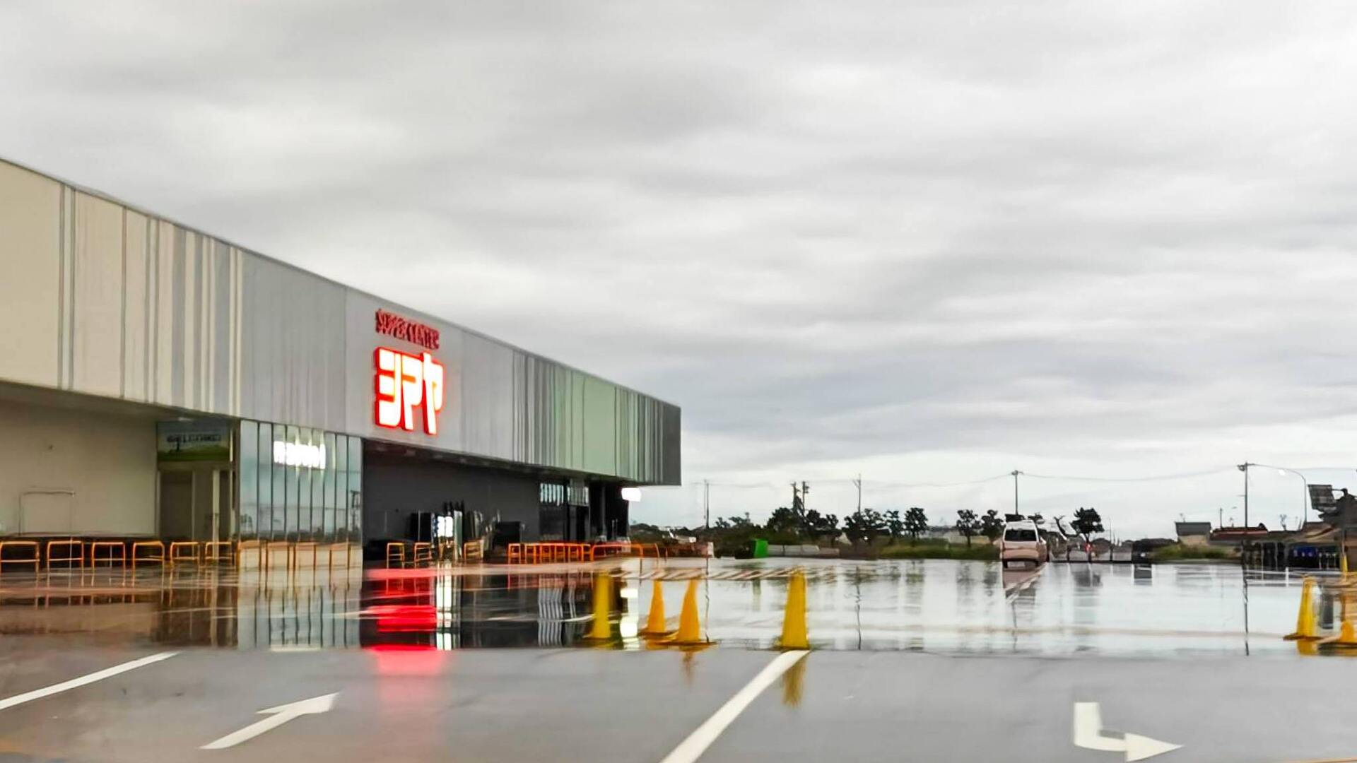 現地ではすでに横長の大型店舗と、広々とした駐車場が完成していました。