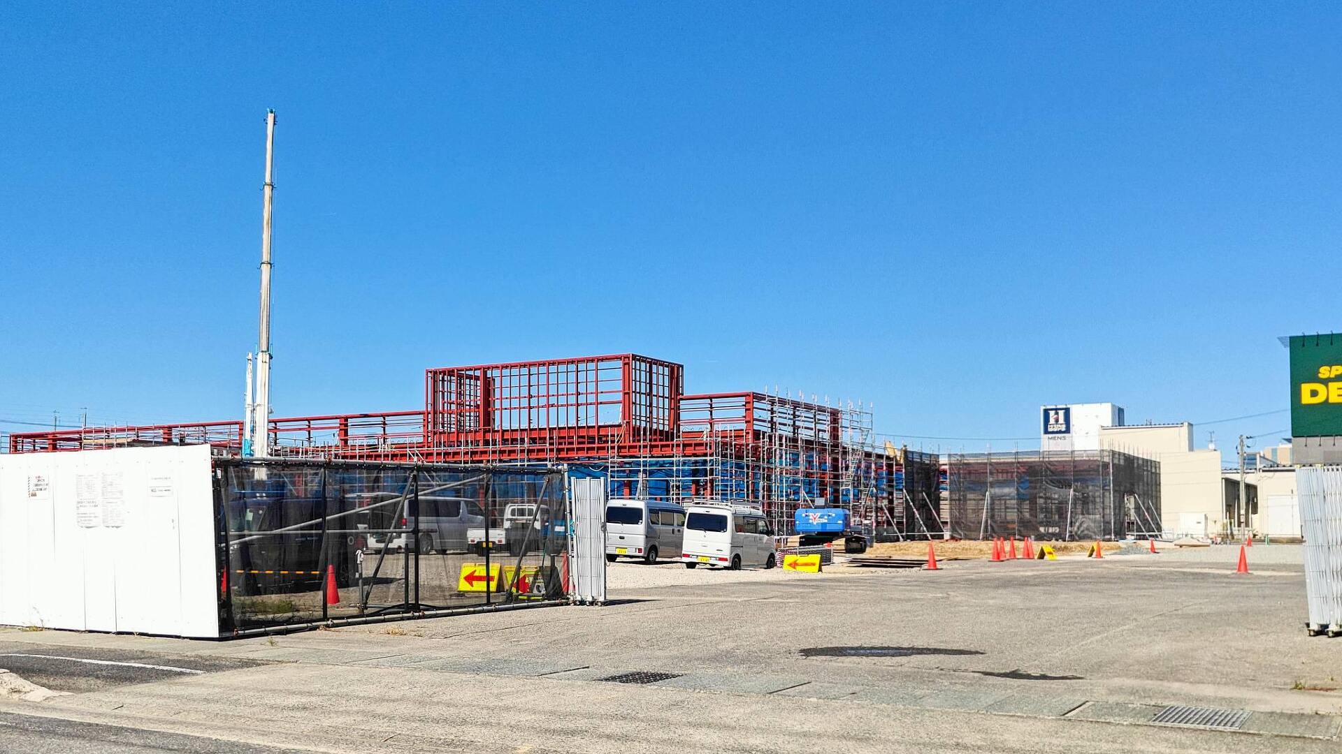 届出が出されてから本格的に工事が始まり、現在では店舗の外観が少しずつ見えてきています。